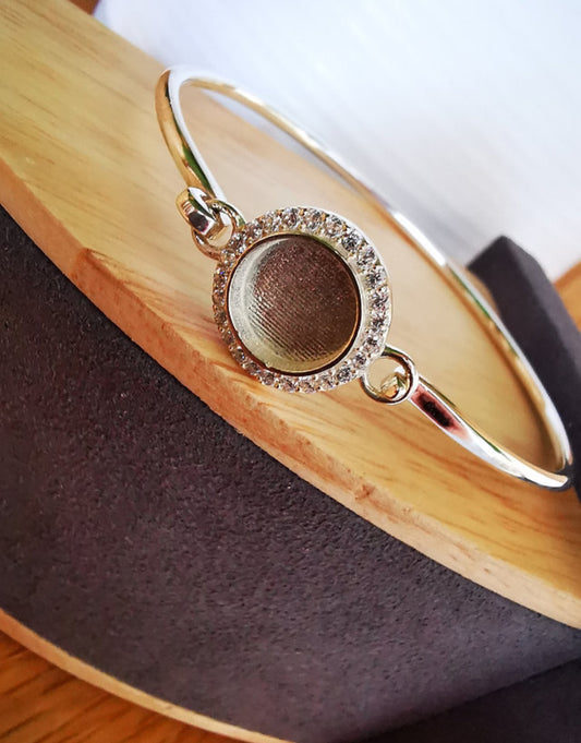 Halo Cluster Hook Clasp Silver CZ Bangle