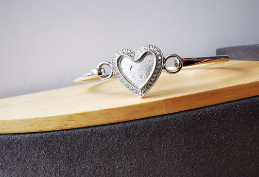 Horse Shoe CZ Hook Clasp Silver Bangle